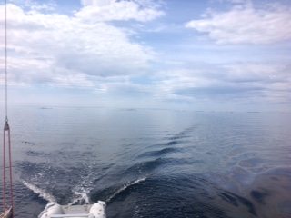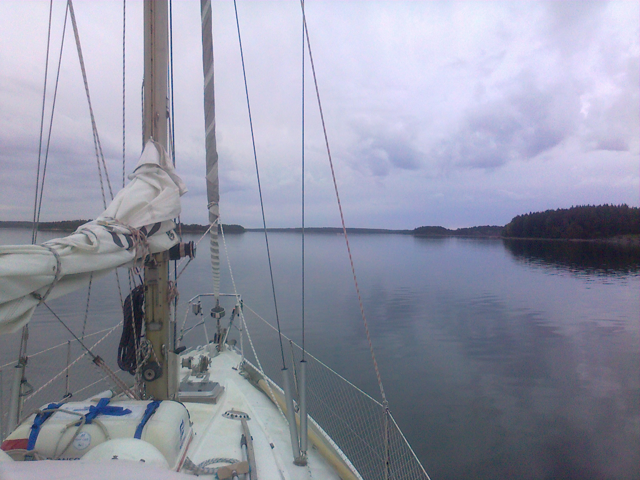 2015-06-17 12:59:54 Lähtö Utöstä suoritettu. Tuulta alle 1 m/s joten purjeilla ei kannata yrittää. Ajamme koneella kohti Kasnäsiä. 59n49.8 21e22.5