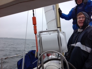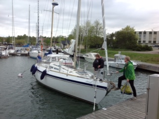 2015-06-14 16:40:29 Tero, Anna ja Rami vihdoin liikkeellä ja sadekin on jo lakannut. Saimme eilen korjattua purjelaatikonkannen, mahdollisesti ilmattua peräsintä ja laitettua vessaan sähkönapin. 60n00.9 22e51.0