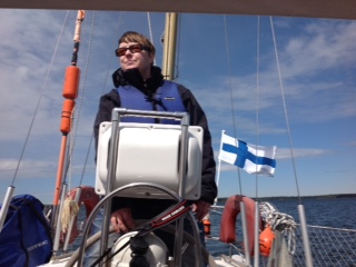2015-06-10 16:04:34 Matkalla Kasnäsistä kohti Taalintehdasta Högsåra myötäpäivään kiertäen. Ulkona oli kiva 9-10 m/s tuuli ja otimme kaksi reiviä isoon ja keulapurjeen kokonaan auki. Vauhtia tuli yli 7 solmua sivumyötäiseen. Oli hyvä että oli pari reiviä, muuten Annan lehmikset olisivat voineet sattua enemmänkin (nyt skuutti iski aika kipeästi käteen). 60n00.2 22e24.8