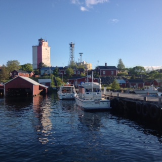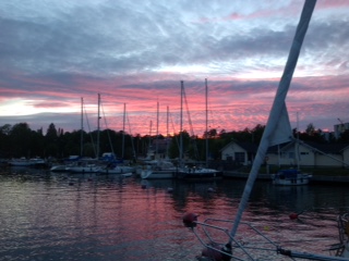 2015-06-14 22:18:17 Ankkuriin Hamnholmeniin, tai sen Söderfladeniin. Nyt sitten päivällistä. Aamulla lähtö venyi, mutta sitten ajoimme aika pitkän matkan purjeilla ja ihan lopun koneella. Täällä oli jo yksi purjevene kulkuvalot päällä odottamassa ankkurissa. 60n01.3 22e21.5.