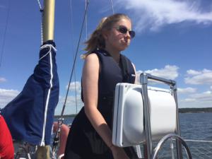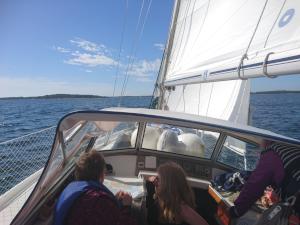 2017-06-10 14:15:12 Nyt purjehtimassa lapsilaumalla, mukana Tero, Marjatta, Anna, Konsta, Lempi, Aava ja Sulo. Aava ohjaa. 60n03.8 22e56.8