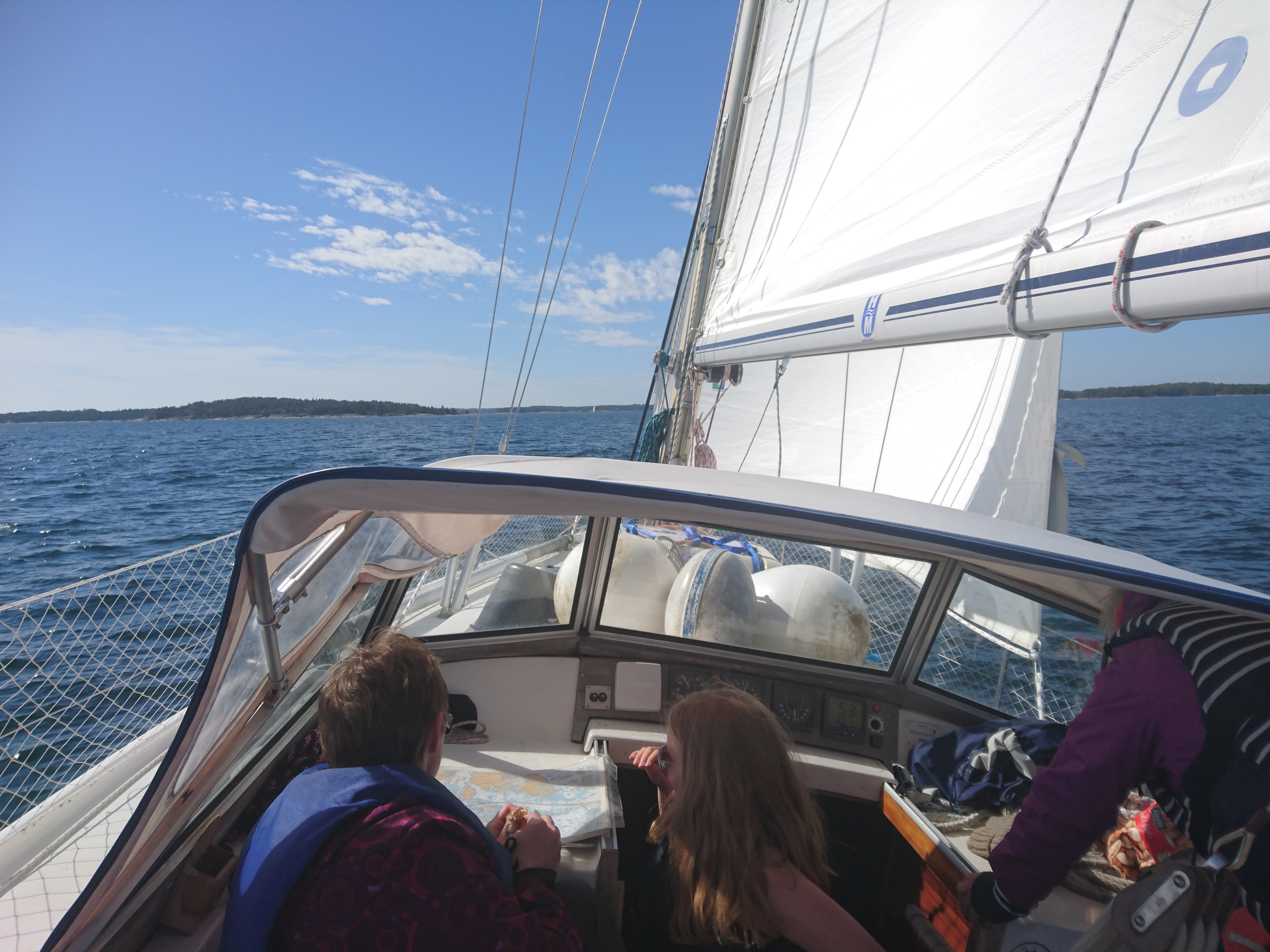 2017-06-17 17:54:43 Lähdimme Öröstä ja nyt matka on kohti Jurmoa. Matkassa mukana Tero, Roto, Anna ja Marjatta. 59n53.1 22e10.6